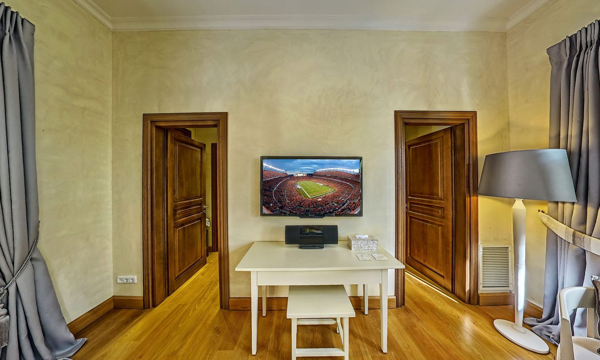 Aristoteles Sea View Suite is a part of the 4 stars Luxury Villa Veneziano. Its size is 45 sqm and it features a Double King Size bed ideal to accomodate with full comfortness 2 or 3 adults (extra bed upon request), or 2 adults and a child or infant.