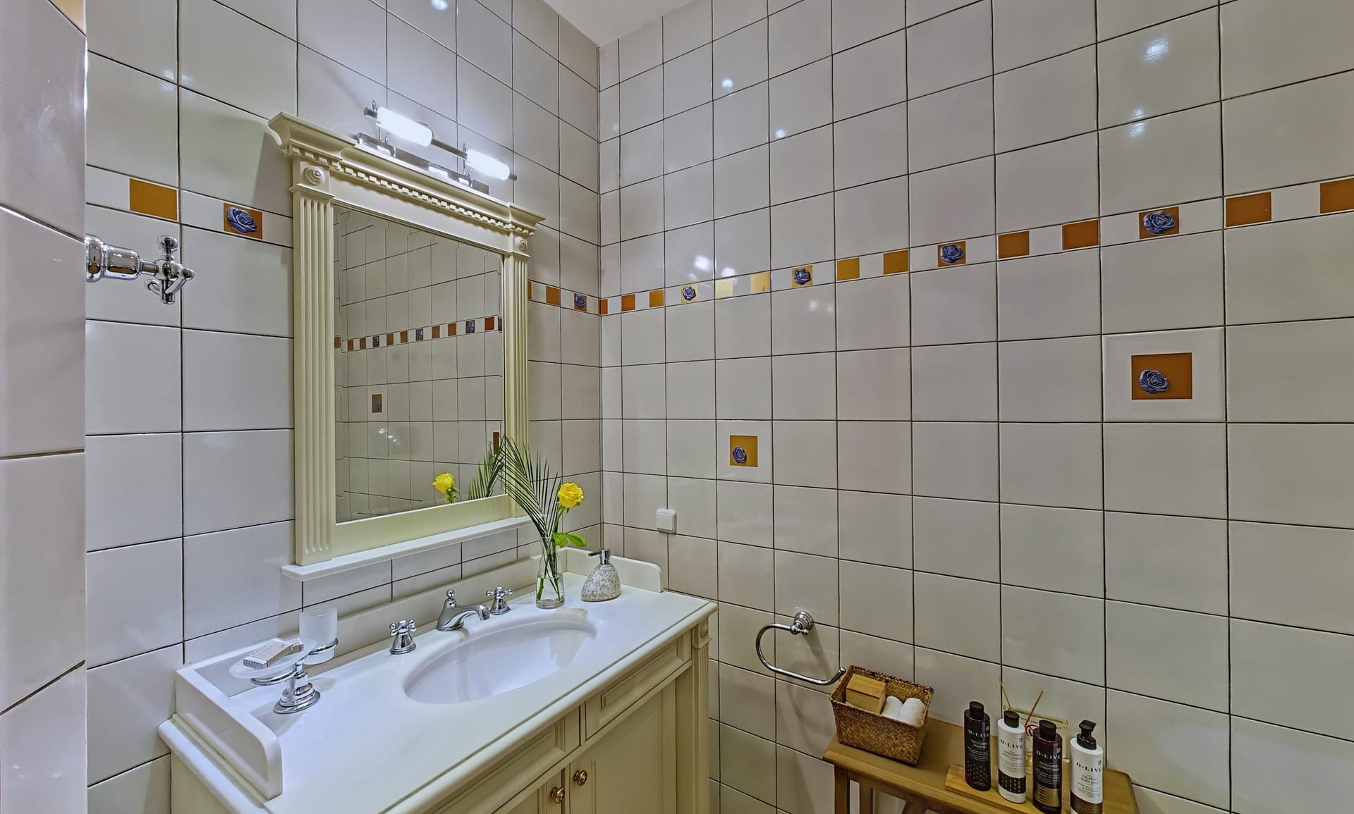 The high quality common areas such as dinning room and living room are spacious and inviting, while the whole property has been constructed on high standard facilities. Large windows welcome you to the exterior spaces, the patio, the garden with BBQ and the stairs that lead to the upper lever where the infinity pool is.