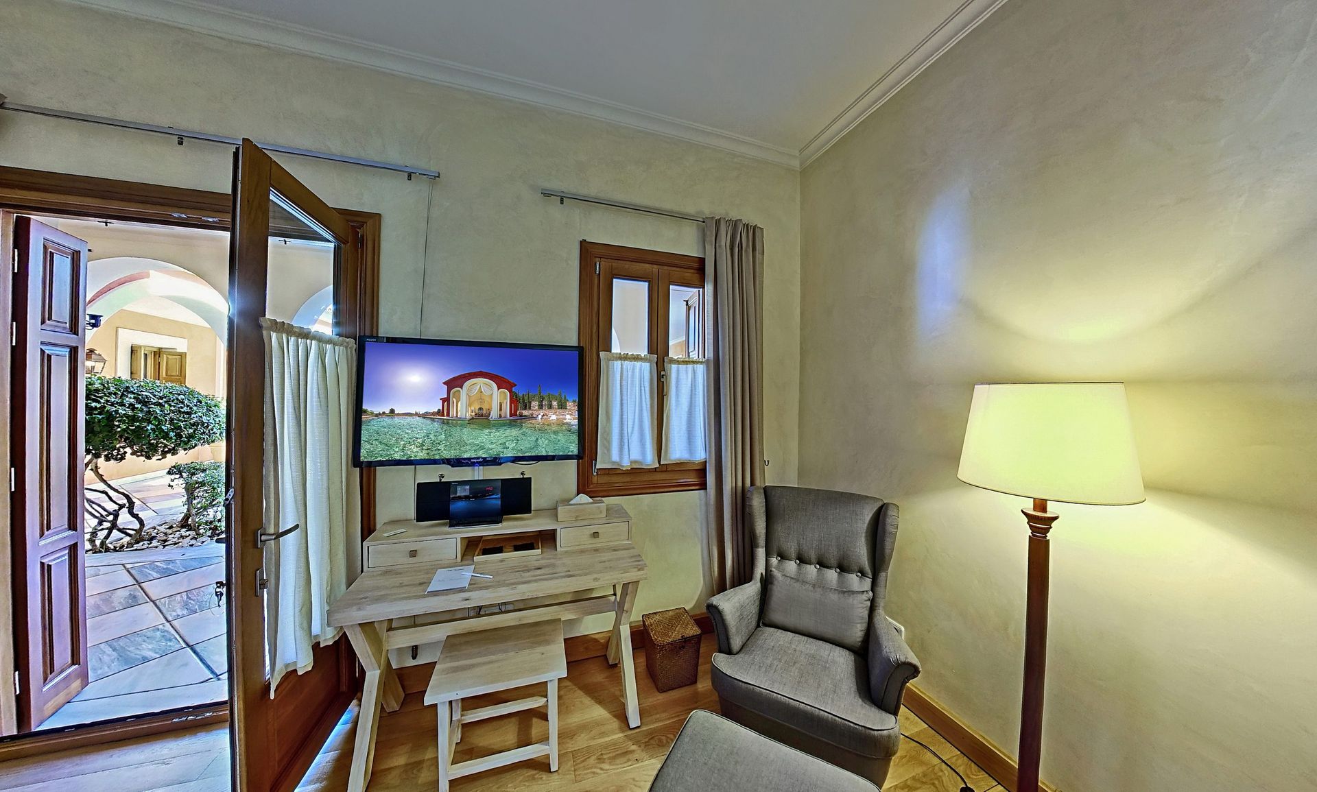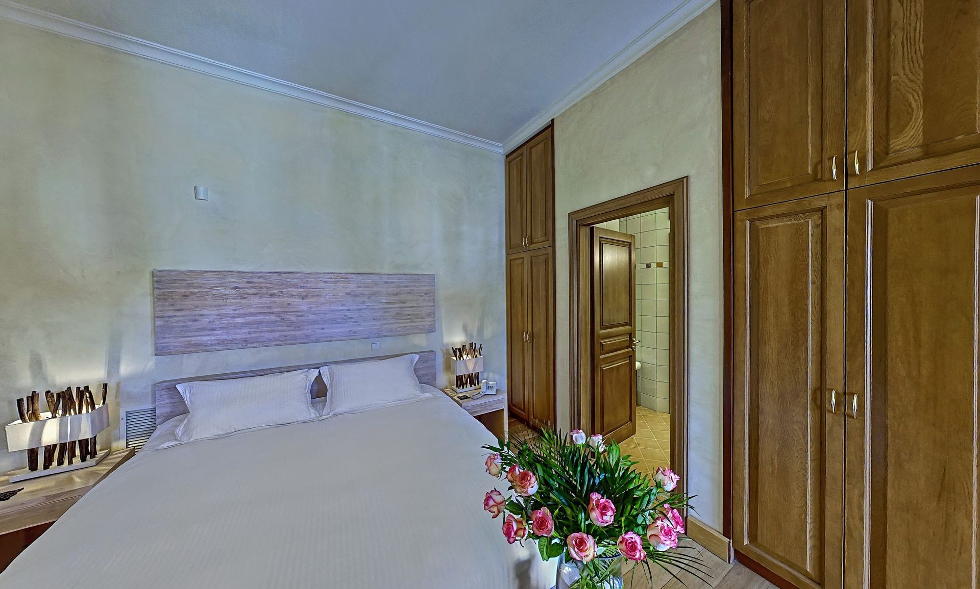 Athena Patio View Suite is a part of the 4 stars Luxury Villa Veneziano. Its size is 35 sqm and it features a Double King Size bed or Twin Beds ideal to accomodate with full comfortness 2 adults, or 2 adults and an infant up to 2 years old (baby cot upon request).