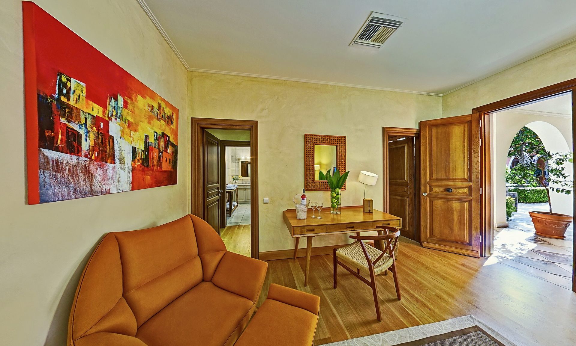 Christina Garden View Suite is a part of the 4 stars Luxury Villa Veneziano. Its size is 65 sqm and it features a Double King Size bed ideal to accomodate with full comfortness 2 or 4 adults (extra 2 beds upon request), or 2 adults and 2 children or 2 adults, 1 child and 1 infant (baby cot upon request).