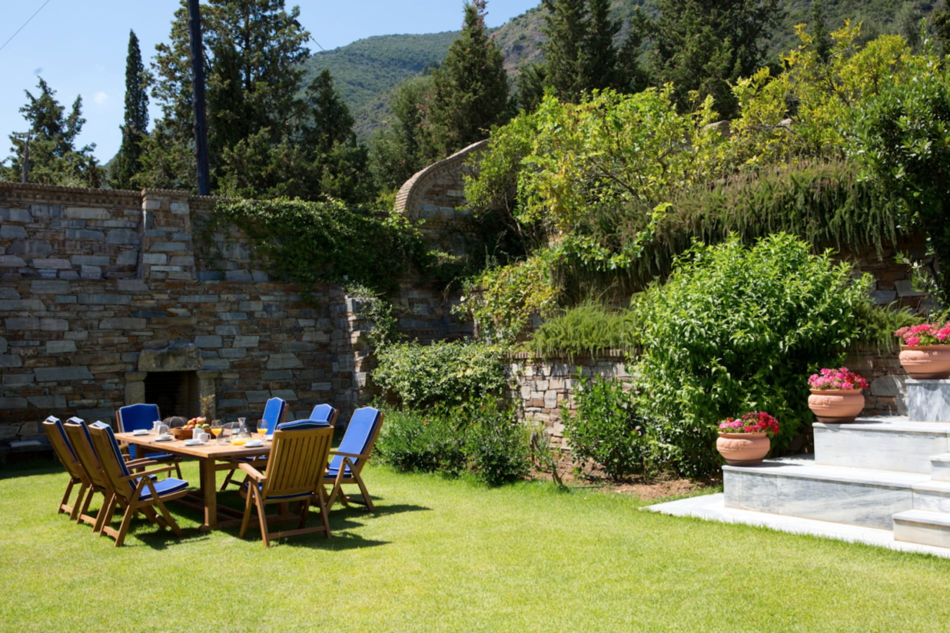 Outdoors, guests are invited to enjoy a spectacular swimming pool, paired with an open-air lounge pavilion, creating an idyllic setting for sun-drenched days and refined evening gatherings. The expansive garden also features outdoor dining and barbecue facilities.